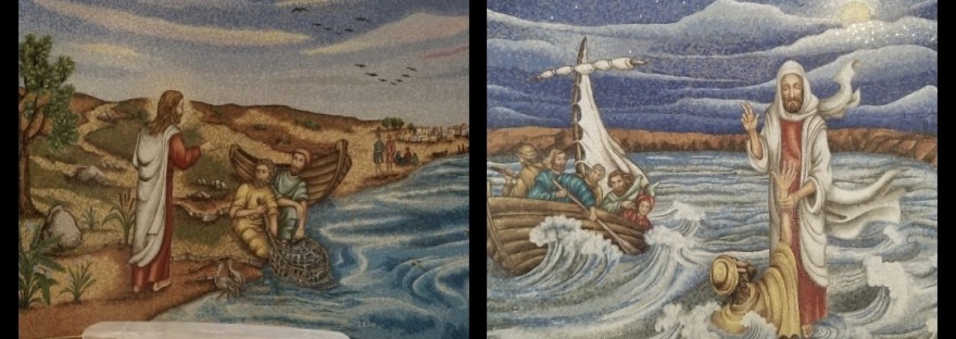 Jesus calls his first disciples, Simon Peter and his brother, Andrew.  Scripture records that Jesus said, “Follow me,” and they left their fishing nets on the spot!  (my paraphrase :19-20)  Next he calls James and John and they also left everything and came immediately.