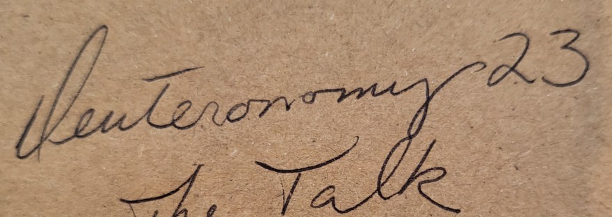 Read Deuteronomy 23 – Why yes, I am blushing – I feel as if the LORD just had “the talk” with me.  You know, the talk one’s parents have when a child is on the cusp of puberty. So, let’s TALK.